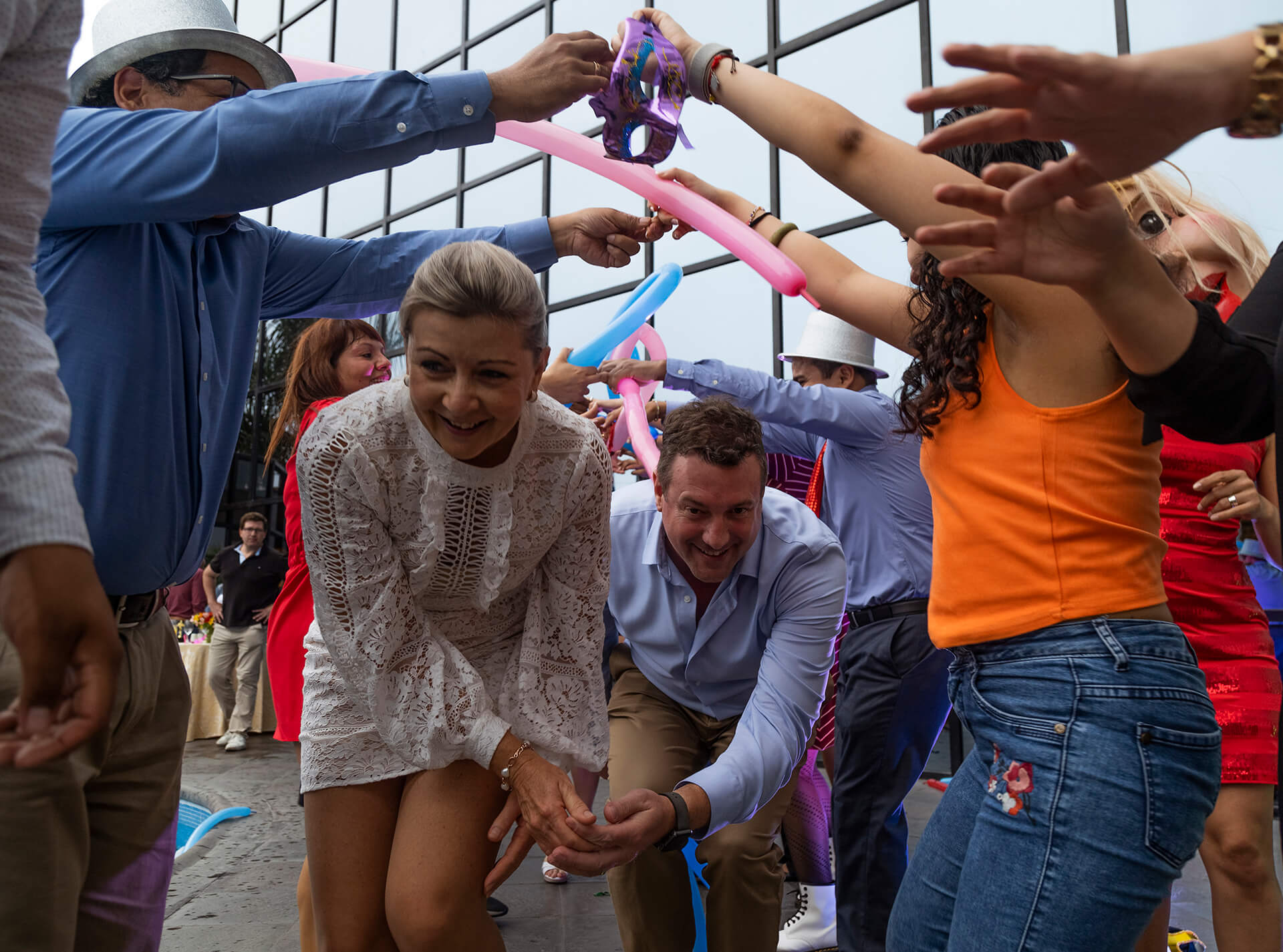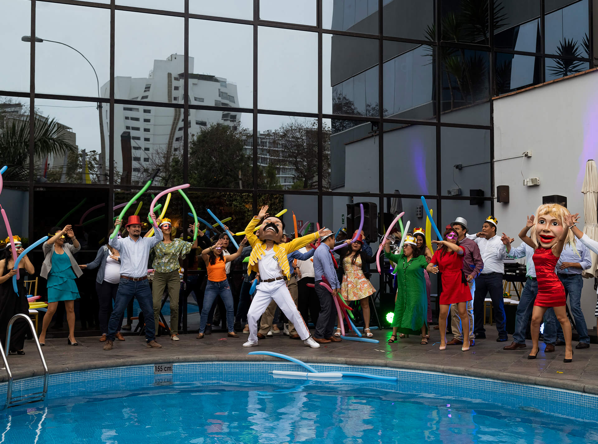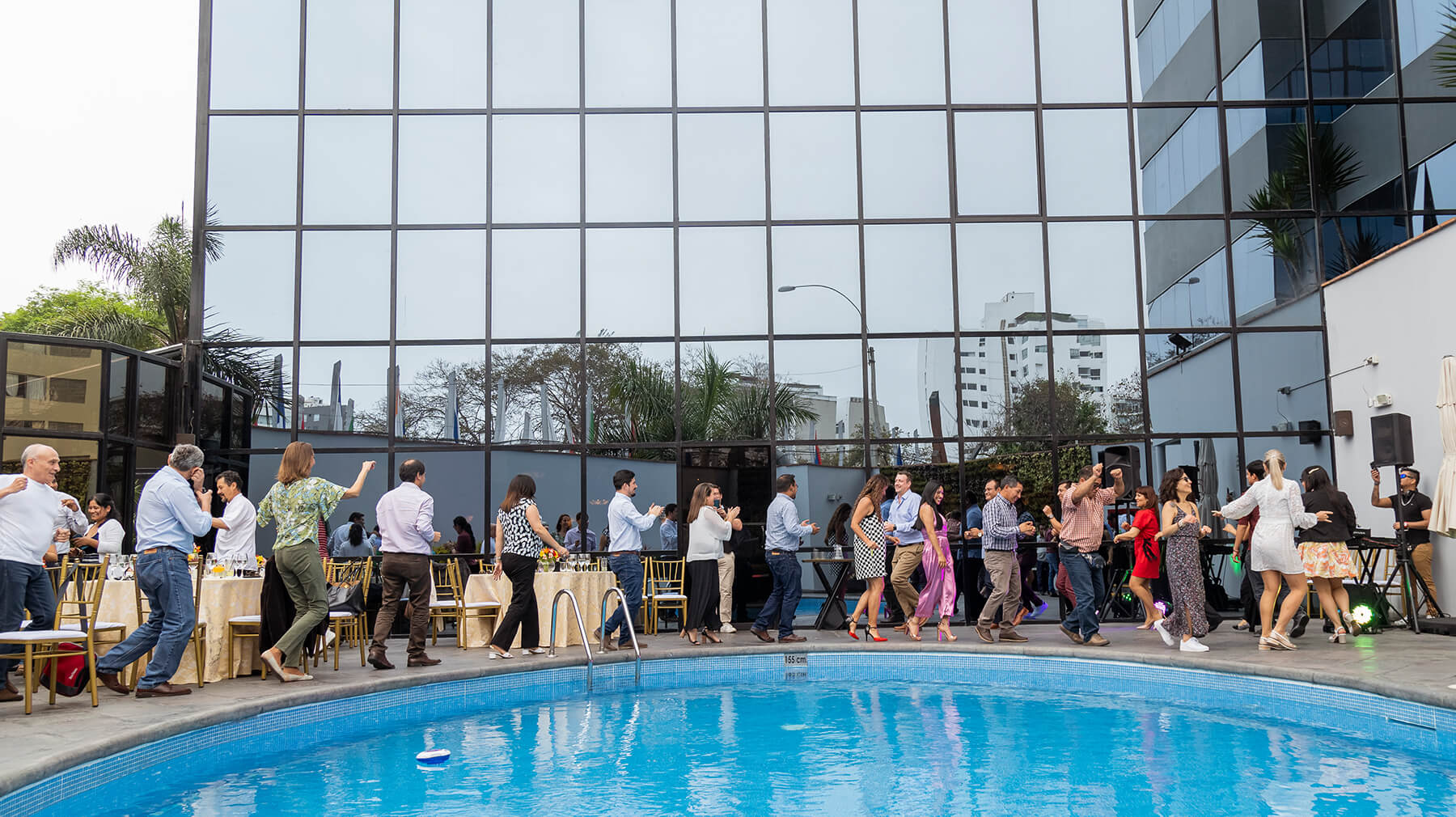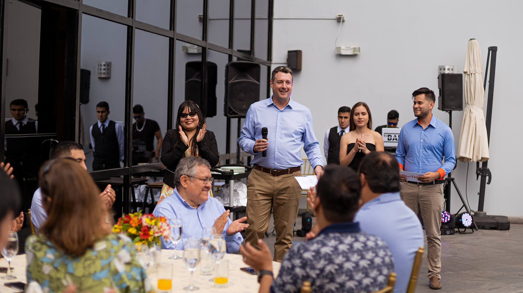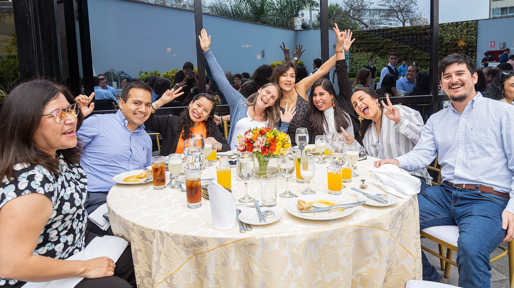 Almuerzo de fin de año con show de talentos y fiesta bailable.